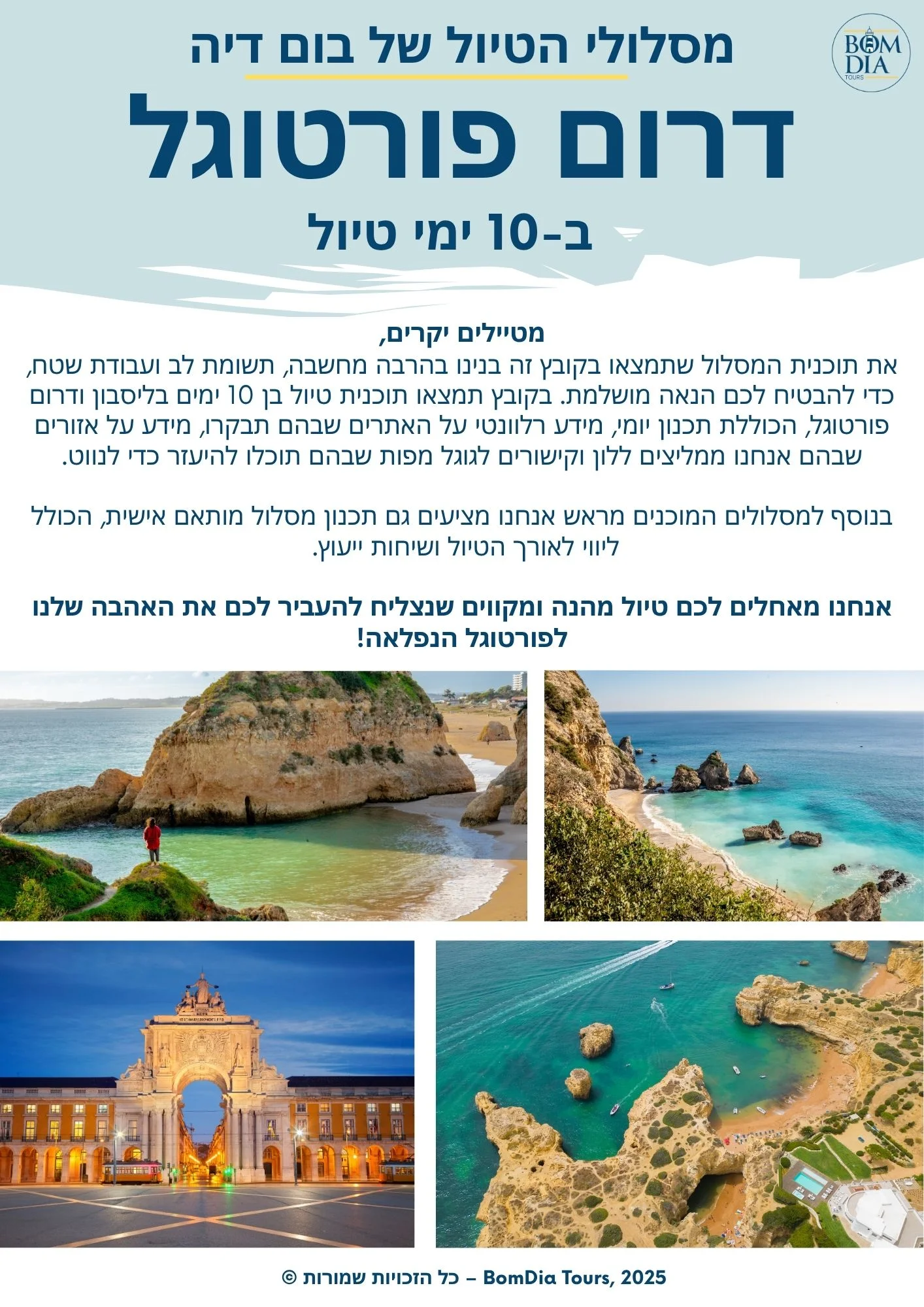 את מסלולי הטיול שלנו בנינו בהרבה מחשבה, תשומת לב ועבודת שטח ומתוך ניסיון של מאות המטיילים שליווינו בטיול שלהם! הם כאן כדי לחסוך לכם זמן יקר בתכנון המסלול ובמהלכו ולהבטיח לכם הנאה מושלמת מהזמן שלכם בפורטוגל.