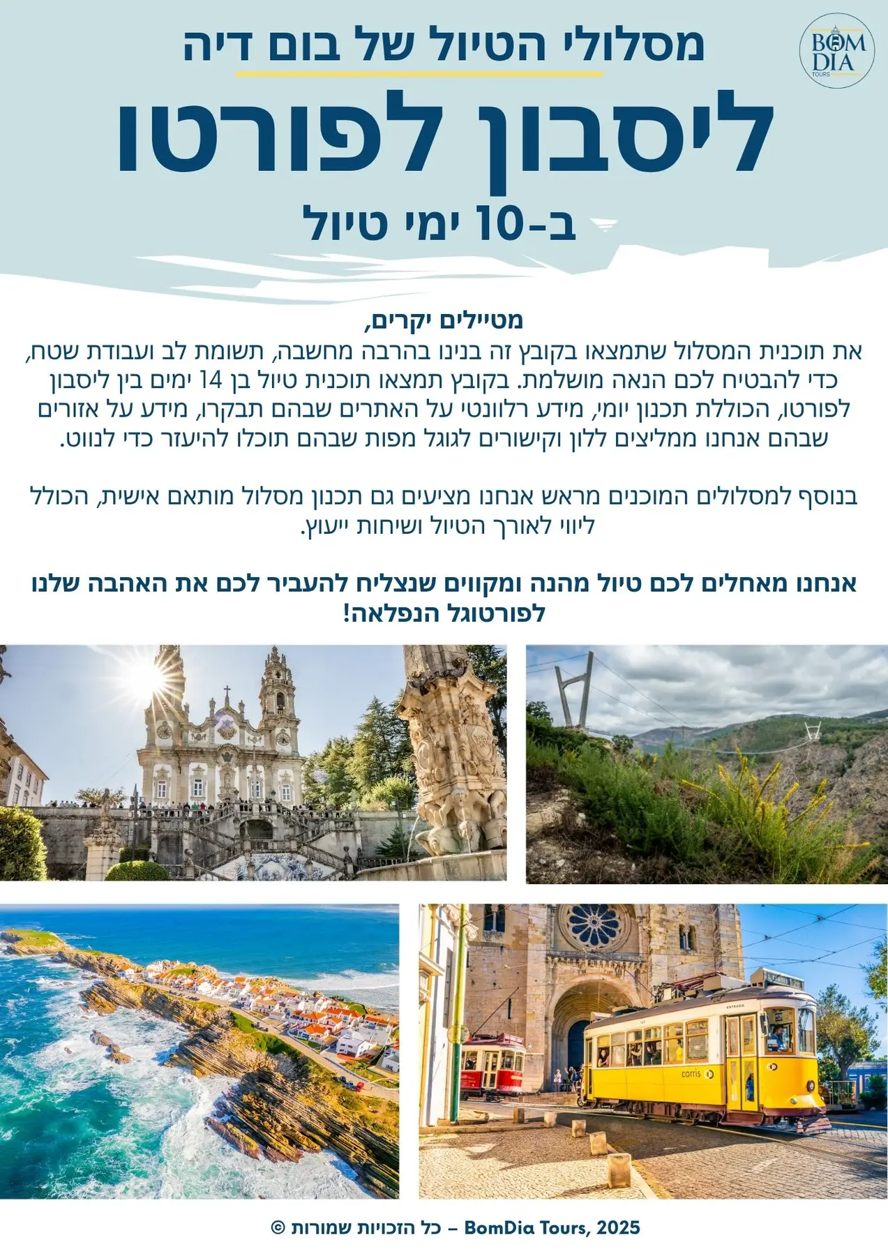 את מסלולי הטיול שלנו בנינו בהרבה מחשבה, תשומת לב ועבודת שטח ומתוך ניסיון של מאות המטיילים שליווינו בטיול שלהם! הם כאן כדי לחסוך לכם זמן יקר בתכנון המסלול ובמהלכו ולהבטיח לכם הנאה מושלמת מהזמן שלכם בפורטוגל.